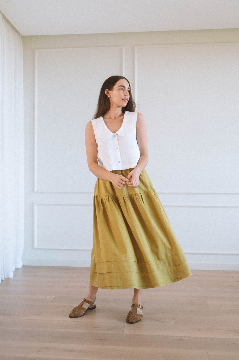 The item every perfectly considered capsule wardrobe needs, a thoughtfully designed and beautifully crafted linen shirt. This season in white and olive green, pure, washed linen.